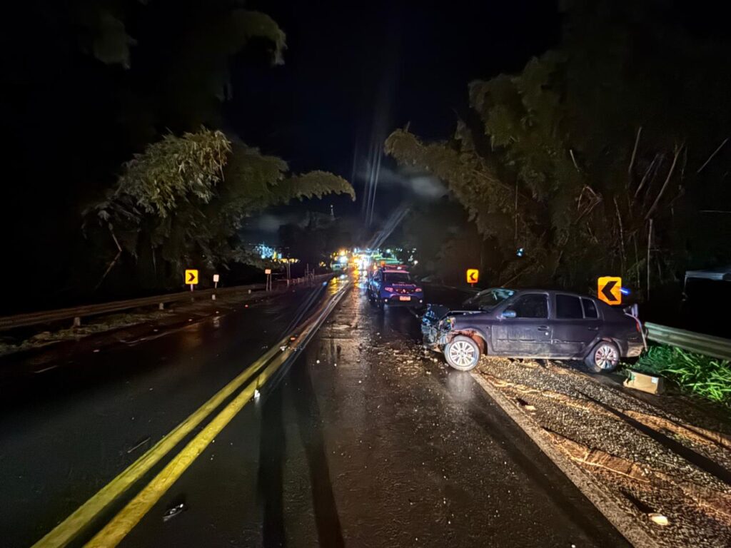 Com o impacto, o guincho caiu da ponte juntamente com o veículo que era transportado. O carro de passeio permaneceu sobre a ponte.