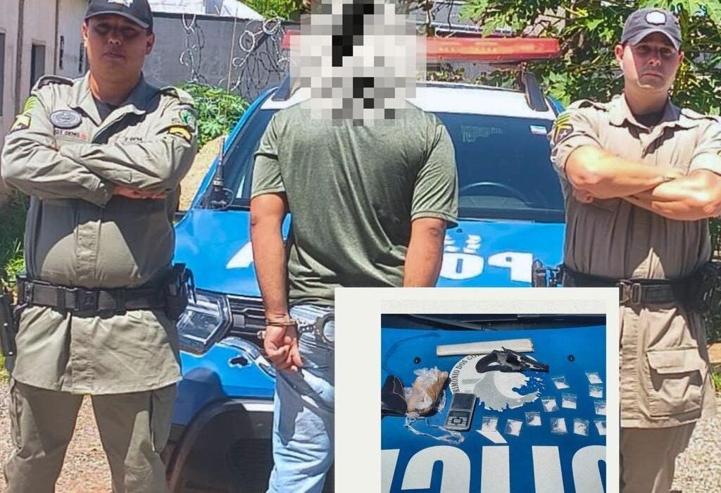 Na sequência, a equipe se deslocou até a residência do suspeito, onde foi realizada uma busca domiciliar. No local, foi apreendido um revólver calibre .32 municiado, além de uma balança de precisão e cerca de 124 gramas da mesma substância.
